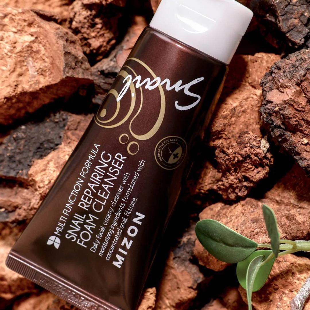 MIZON Snail Repairing Foam Cleanser is a gentle yet deeply effective facial cleanser formulated with snail extract to hydrate, soothe, and revive the skin. This rich foaming cleanser removes dirt, excess oil, and impurities without stripping the skin of its natural moisture, making it ideal for dry and sensitive skin types.