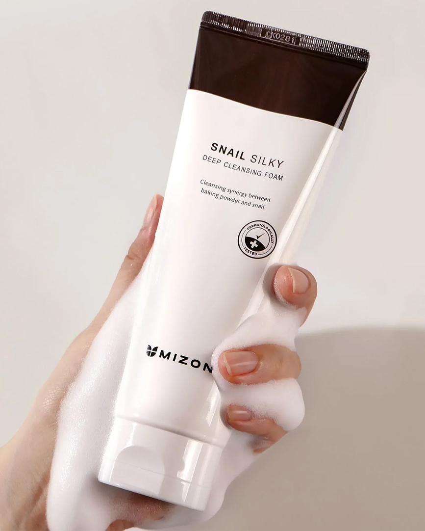 Mizon's Silky Foaming Snail Cleanser is a skincare product that combines effectiveness with gentleness. This cleanser features a rich, velvety foam that deeply cleanses the skin, removing dirt, excess makeup, and impurities without drying it out.